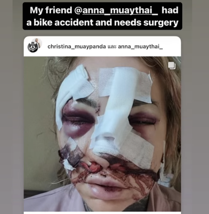 バイク事故で顔面崩壊(@anna_muaythai_より)