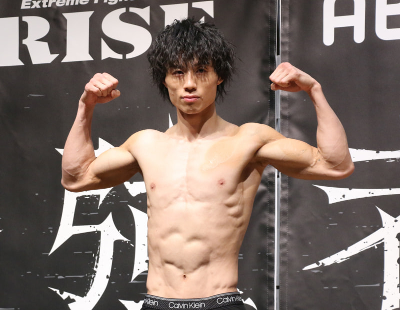 金子、仕上がった身体でマッスルポーズ