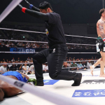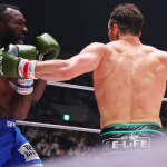 昨年6月、ムキムキボディでKO勝ちする木村(左)