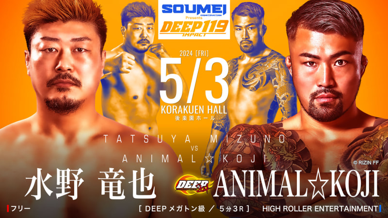 元DEEPミドル級王者・水野が5年半ぶり参戦のANIMAL☆KOJIと激突