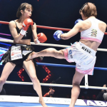 前蹴りを繰り出す菅原