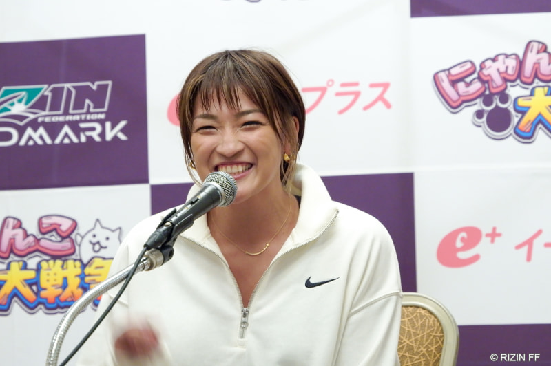 笑顔でインタビューに応じるRENA