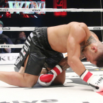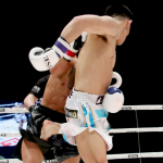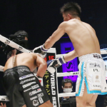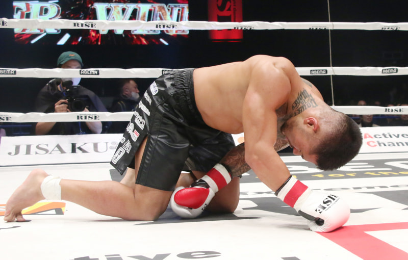 与座の後ろ蹴りを被弾し、苦しそうな中村