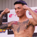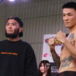 フェイスオフで拳を突き出す萩原