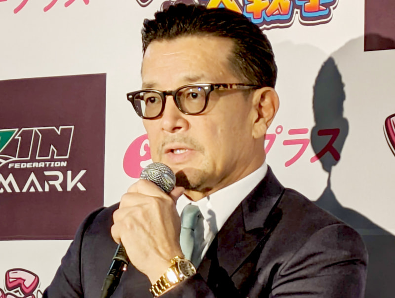 大会後の囲み取材に応じるRIZIN榊原代表