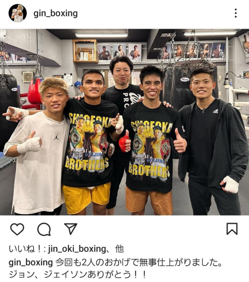 24日、銀次朗(左)はスパーリングパートナーと共に仕上がり好調をアピールしていた。(銀次朗のインスタより)