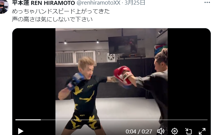 平本蓮が鋭いミット打ち @renhiramotoXX