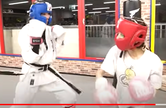 花咲(右)は空手家の泉あお(左)とスパーリングで気持ちを見せていただけに、試合キャンセルは残念(『昇侍』チャンネル)
