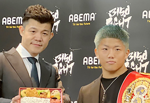 重岡銀次朗(右)と、3150FIGHT亀田興毅ファウンダー亀田興毅ファウンダー