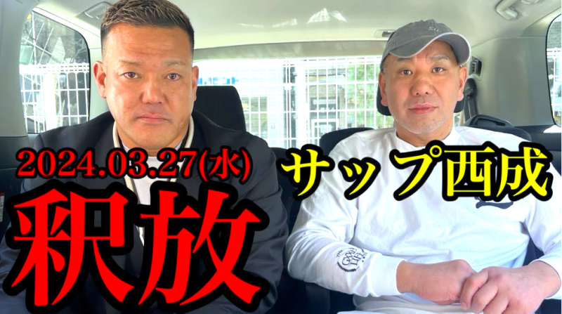 サップ西成(右)が不起訴釈放となった直後に、アンディ南野(左)が動画を配信した(『アンディ伝説』サムネイルより)
