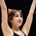 この透けた衣装でコスチューム部門グランプリを受賞したレースクイーンユニット『WedsSport Racing Gals』リーダーの霧島(左)がコメント
