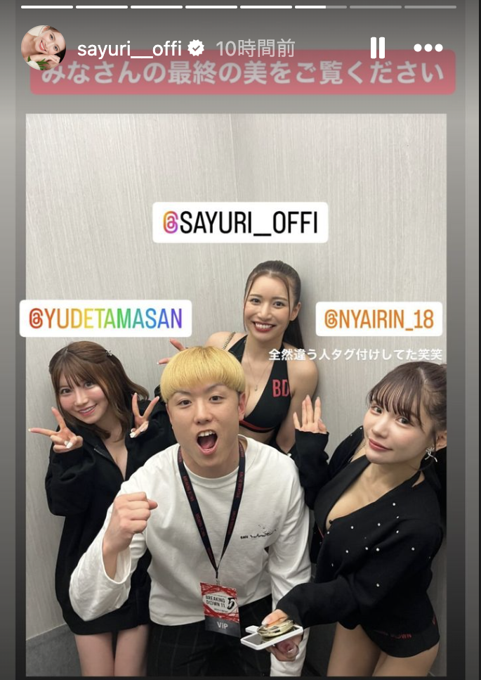 昨日の大会でサウンドガール最後となった3人。平瀬あいり、右はゆでたまご