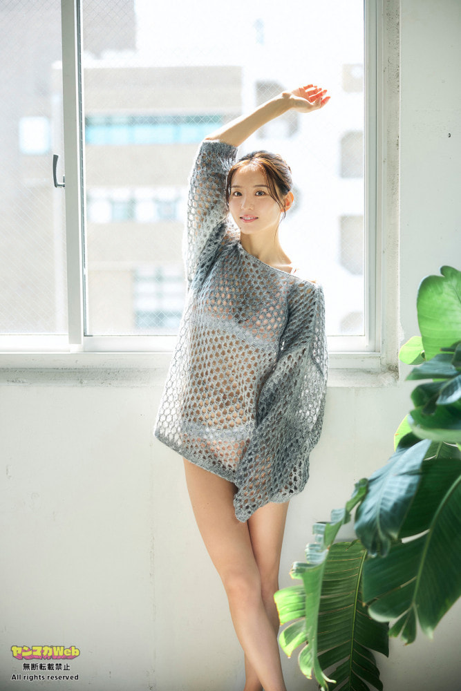 宮原華音、メッシュの衣装で美脚披露©︎高橋慶祐/ヤンマガWeb ▶︎ヤンマガページへ