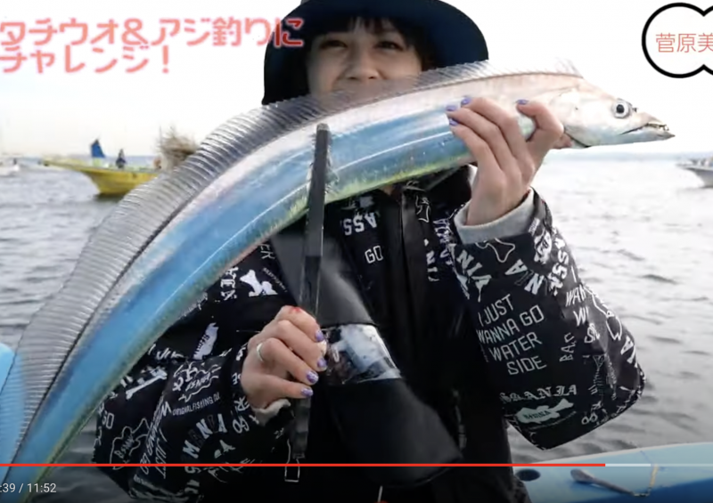 22年に釣ったタチウオ、今回のと比較にならない(菅原美優 YouTubeより)
