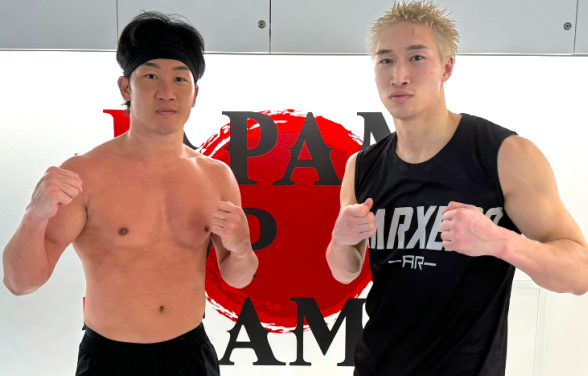 安保が昨日3日、自身のSNSで公開した朝倉未来とのツーショット写真。朝倉の右腕の力こぶに注目!(@anpo_rukiya)