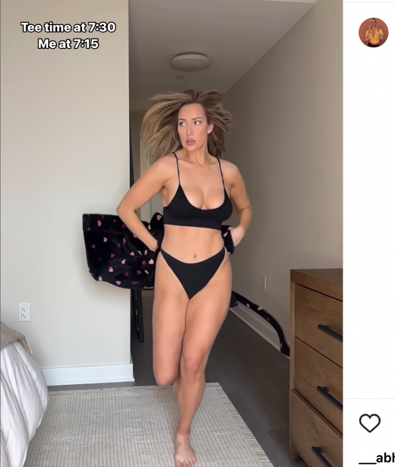 寝間着を脱いでゴルフの準備@_paige.reneeより