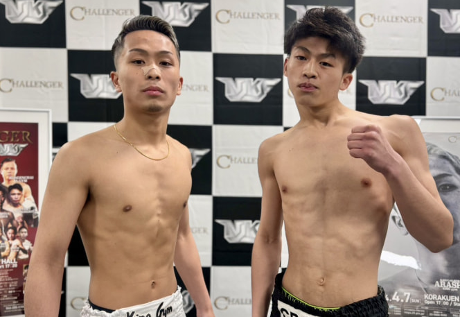 メインで対戦する嵐(左)と桂英慈(右)は共に計量クリアー