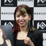 先月のK-1の計量、オレンジの水着で登場したぱんちゃん