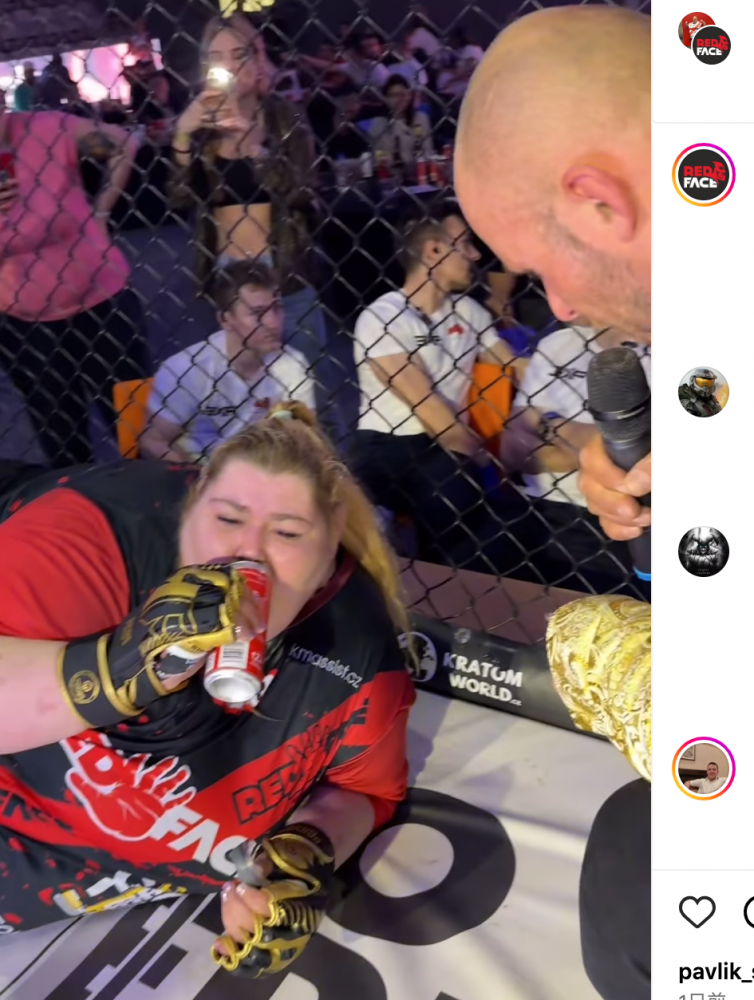 負けた後、立てず、好物のエナジー飲料を飲むコトラロワ@redface.czより