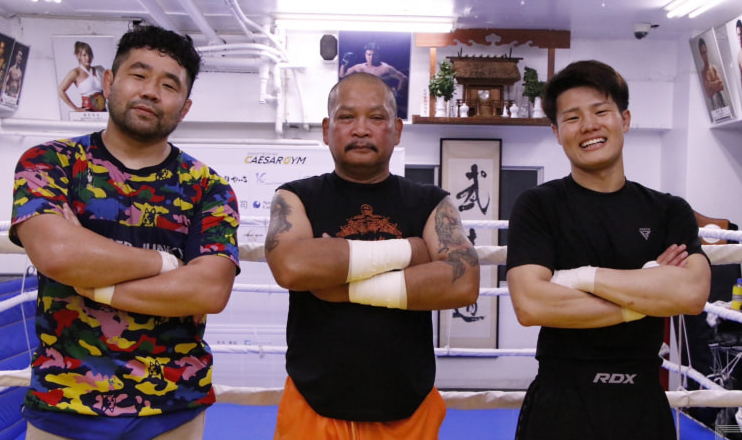 坂本(左)と山田(右)、中央はダムトレーナー©︎SHOOT BOXING