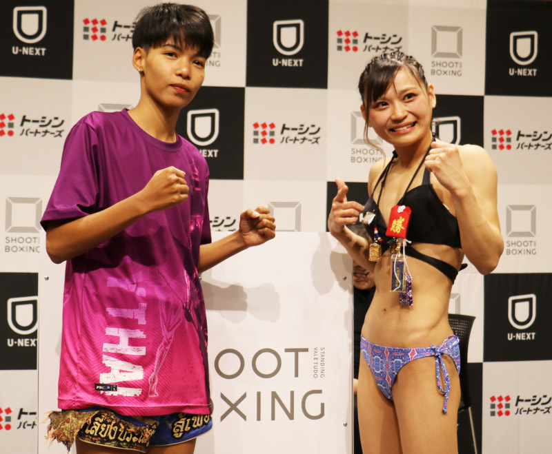MISAKIは黒とカラフルなビキニ水着で計量パス、バキバキの腹筋だ