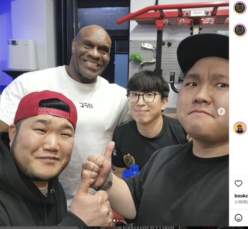 サップと肩を組む腕相撲世界王者(@kafarmwrestlingより)
