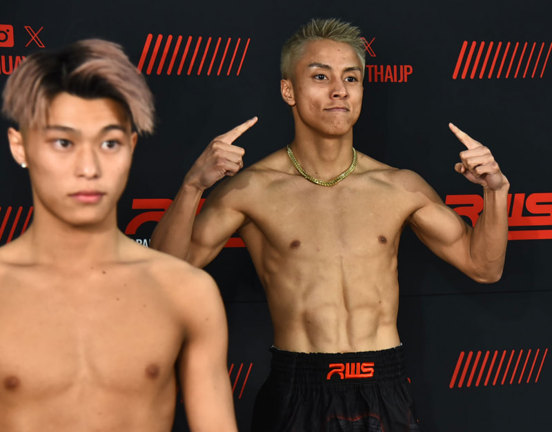 石井(右)、気合いの入った顔で計量パス