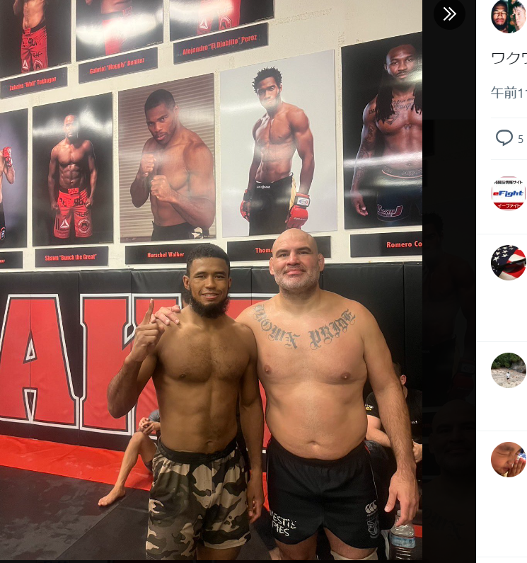 コーチの元UFCヘビー級王者ヴェラスケスと @ベイカネチャンネル Xアカウントより