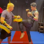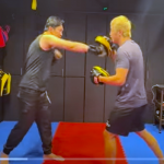 相手の顔の辺りに蹴り足と同じ腕を伸ばすことで(『サラ久保ちゃんねる』)