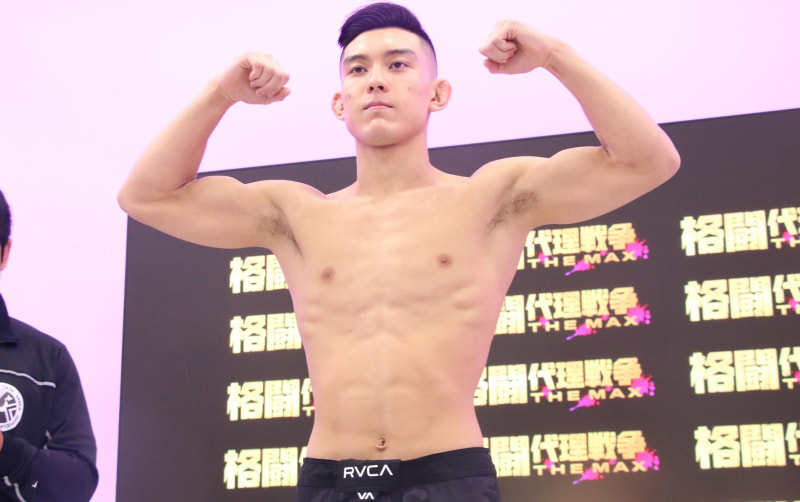 優勝候補として注目のトミー矢野が計量パスしマッスルポーズ