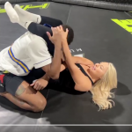 胸元が大きく開いたグラマードレスで登場のジョーンズ@oktagon_uk_irelandより