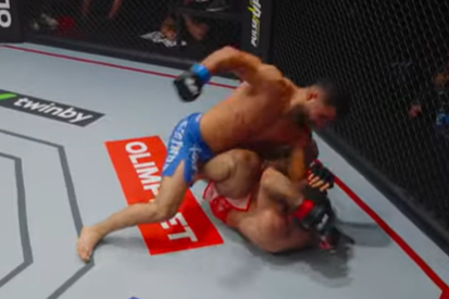 試合は無法者ファイター(下)が一方的に敗北 @HFC MMA YouTubeより