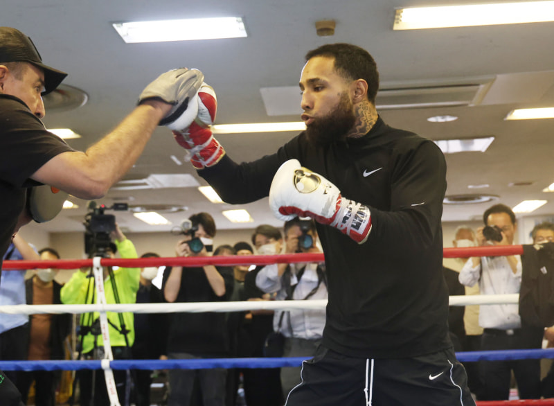 ネリが強烈なパンチをミットに連打
