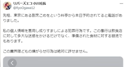 なりすまされた被害者がXで再発防止をうったえたメッセージ(こめおYouTubeチャンネル)