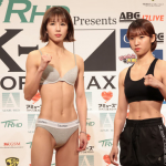計量に臨む菅原、腹筋が縦に割れている=前戦