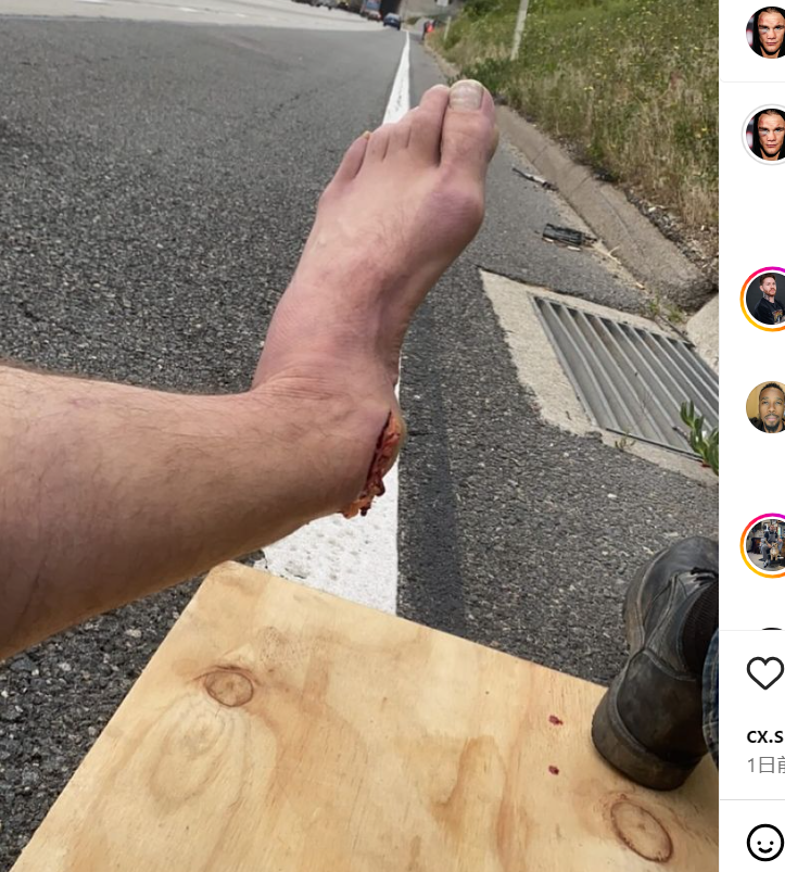 アンダーソンの事故直後の変形しえぐれた足(24日、本人のインスタグラム)
