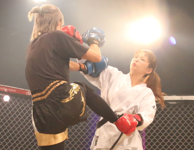 空手着姿の瀬戸(右)は、あお(左)とBD6で対戦した