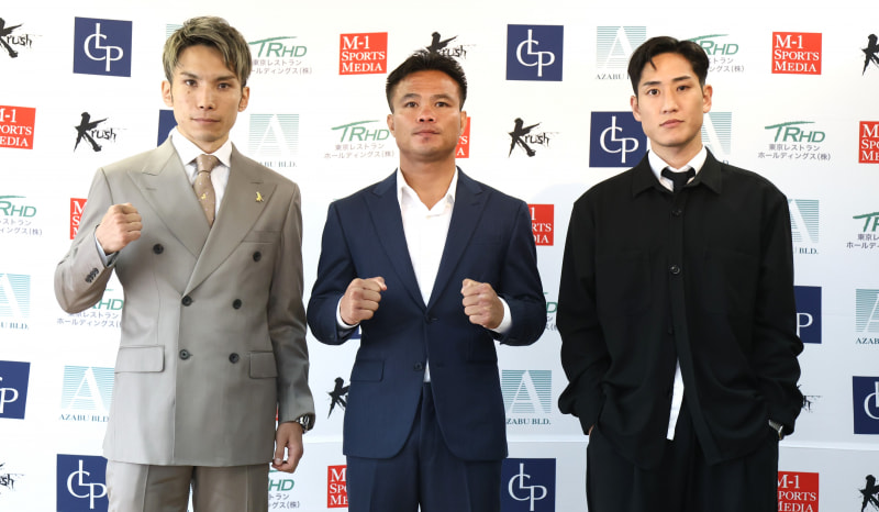 K-1チームのメンバー。左から佐々木、ゴンナパー、林(C)Krush