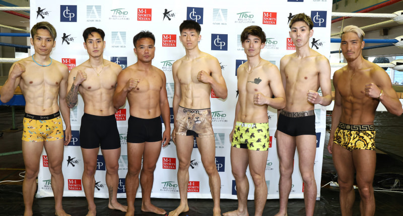 K-1vs.Krush4対4綱引きマッチに出場する選手たち。ジンのみ再計量(C)Krush