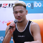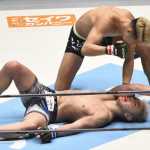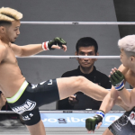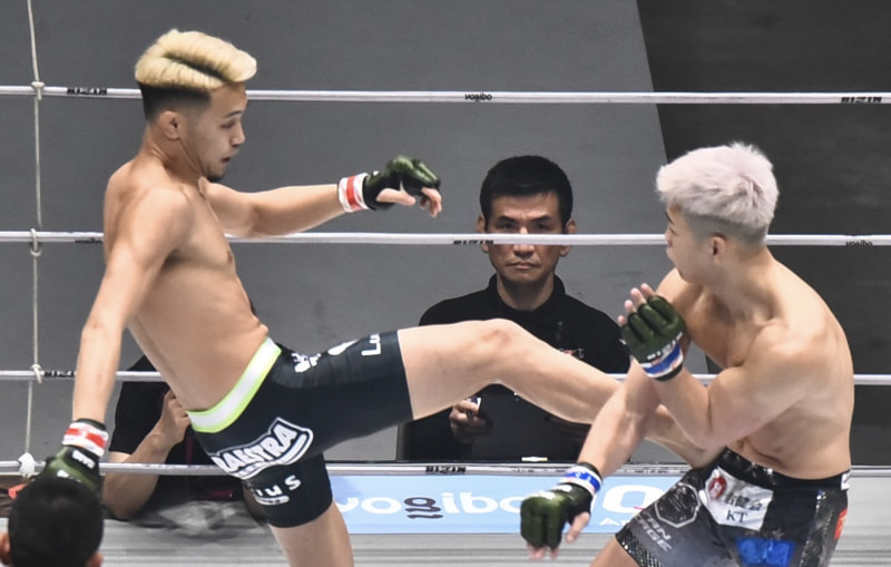高木がボディへ蹴りを入れる