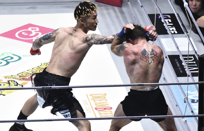 鋭いパンチを入れる篠塚