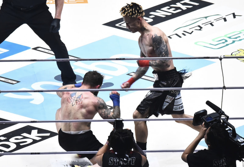 篠塚の右ストレートでダウン!