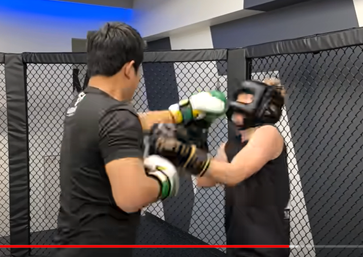 チョンとのスパーリングではパンチをもらうシーンも(『安保瑠輝也 』チャンネル)