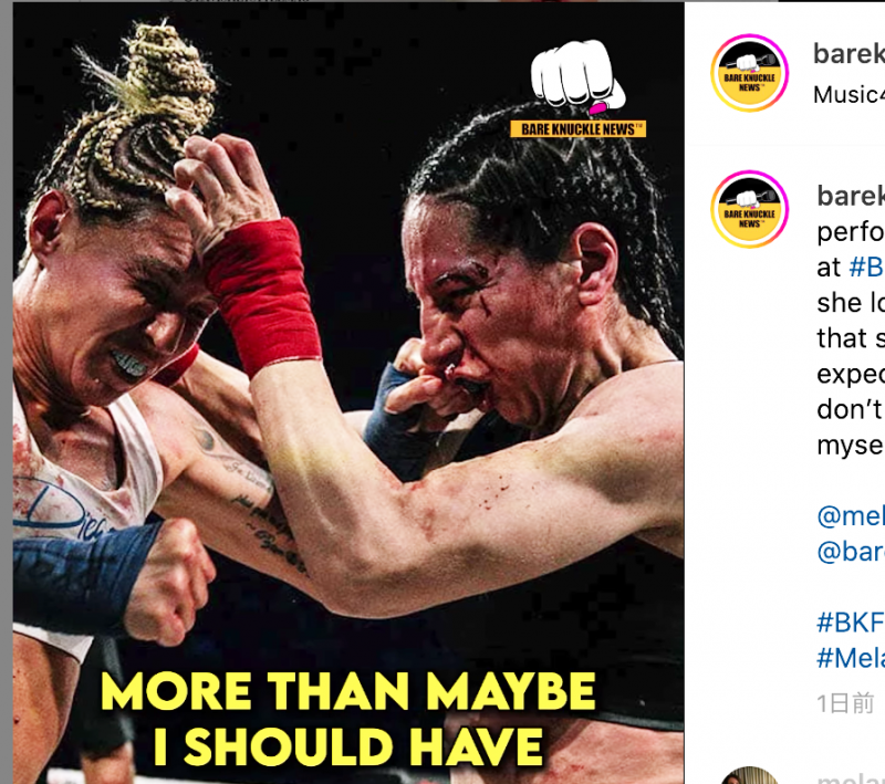 ボコボコに殴られるメラニー・シャー(右、@bareknucklenewstvより)