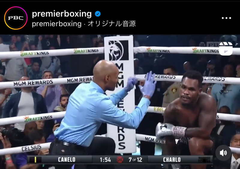 チャーロがダウン!(@premierboxingより)