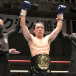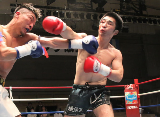 3月大会では元NJKF王者・山浦俊一との流血戦を制した日本フェザー級王者・瀬戸口勝也(右)