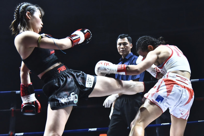 (今年4月のパヤーフォン戦)伊藤が前蹴りでパヤーフォンを下がらす