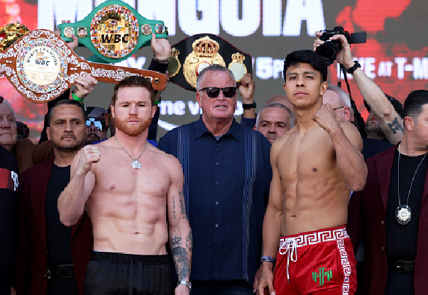 王者カネロ(左)と無敗ムンギアが計量パス!10cmの身長差(Photo by Cris Esqueda/Golden Boy/Getty Images)