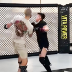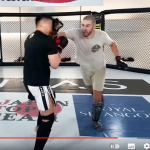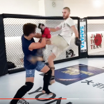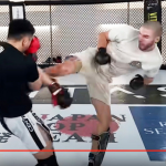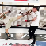 安井に二段蹴りを繰り出す(朝倉海YouTubeより)