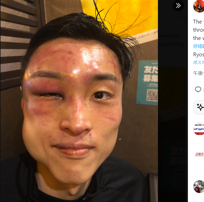 右半分が大きく腫れた西田の顔 @mjaltamura